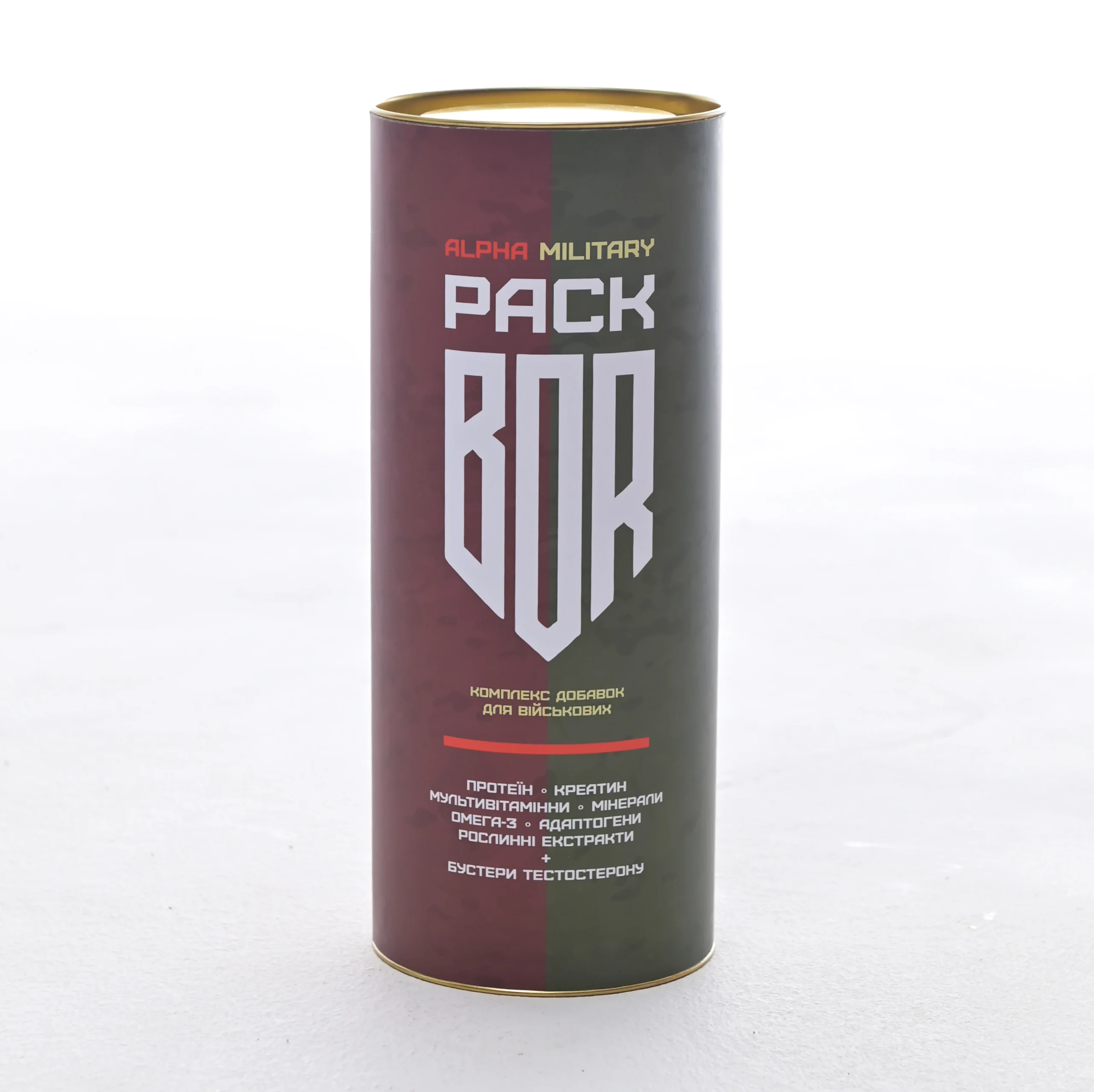 В нас часто замовляють два комплекси одразу – Military Pack (комплекс все в одному) та Alpha Pack (комплекс для підняття рівня тестостерону). Саме тому, ми об’єднали ці два комплекси в один зручний тубус (аби не займало багато місця у вашому рюкзаці чи розпалазі). З АльфаПаку прибрані дублюючі компонени (такі як Бор, Магній, Вітаміни D3+K2 та цинк), які являють основною будь-якого нормального тестобустеру, але які також є в базовому комплексі Мілітарі Пак від BOR. Таким чином, ви зможете не перевантажувати себе надлишковою порцією цих компонентів і одночасно зекономити, беручі два комплекси одночасно.